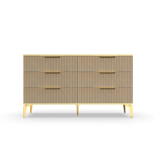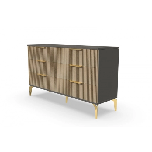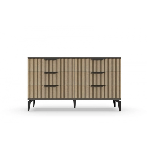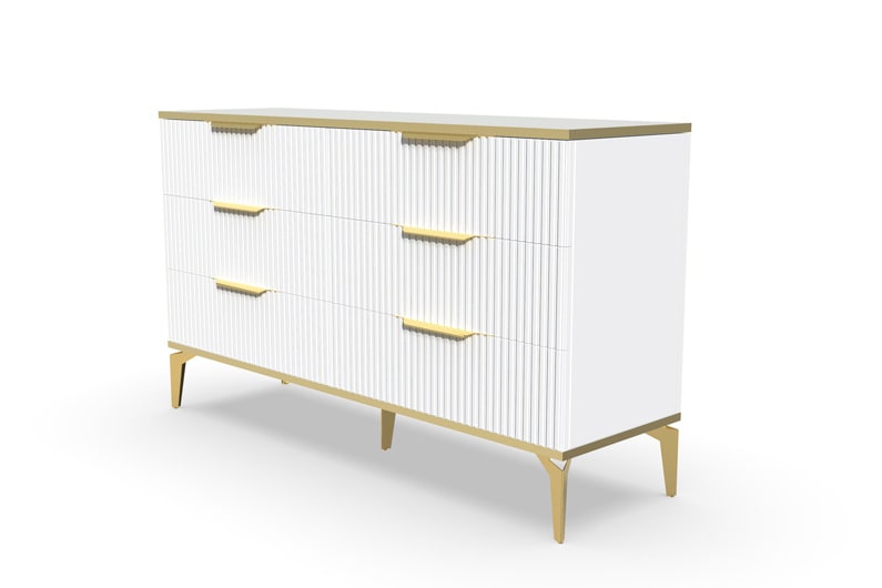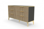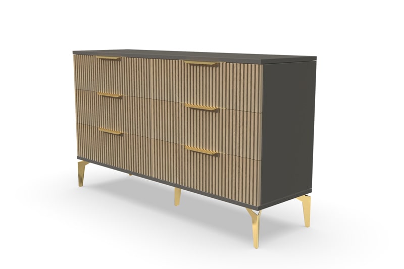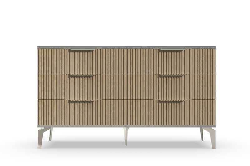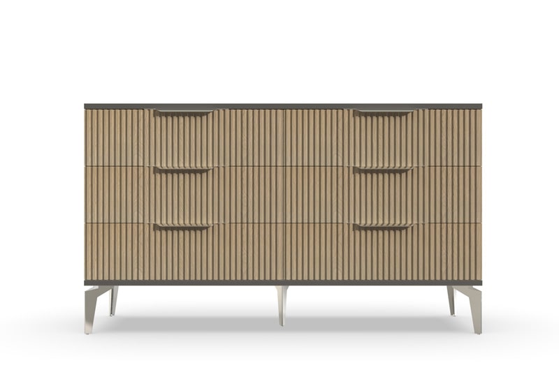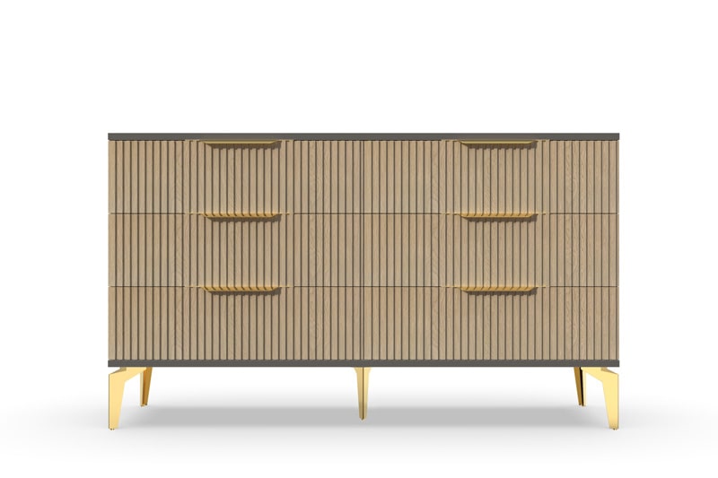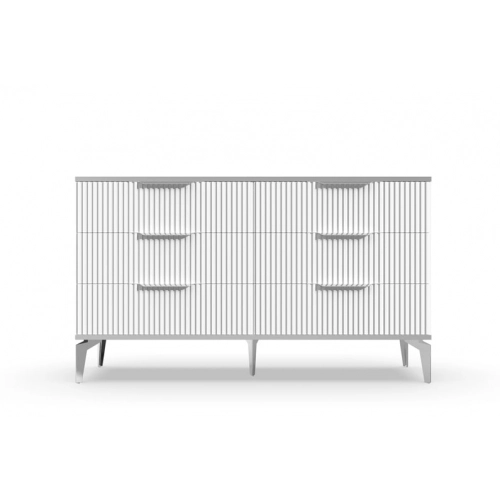 В итоге, комод "Рейн" от фабрики Geona - это стильное и функциональное решение для хранения вещей в вашей гостиной или спальне. Его рифлёные поверхности придают ему уникальный и современный вид. Комод изготовлен из высококачественных материалов и производится с применением передовых технологий, что гарантирует его долговечность и надежность.