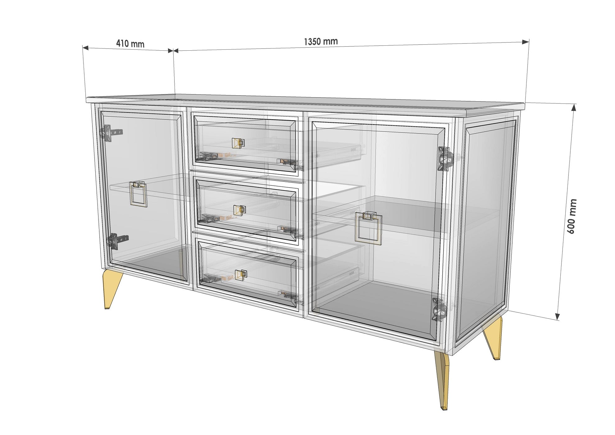 Комод "Шарм" также предлагает удобные ящики для хранения различных предметов, таких как одежда, постельное белье, посуда и другие мелочи. Ящики оснащены удобными металлическими направляющими, что обеспечивает легкое открытие и закрытие, а также долговечность использования.