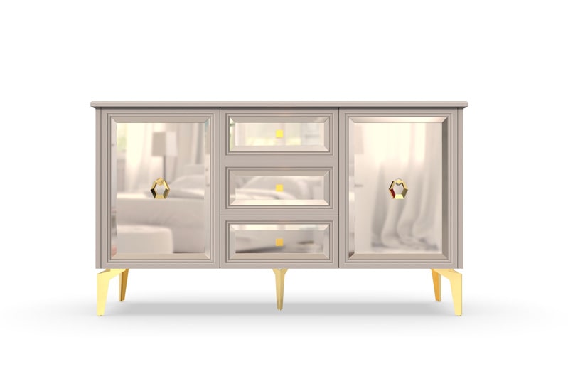 Одним из особых особенностей комода "Шарм" является наличие зеркальных фасадов. Они могут быть выполнены с использованием синего зеркала с фацетом, бронзового зеркала с фацетом или серебреного зеркала с фацетом, что придает комоду изысканный и роскошный вид. Зеркальные фасады могут быть удачным решением для создания эффекта простора и света в комнате, а также добавляют внутреннего блеска и шарма в интерьер.