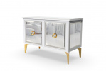 Одним из выдающихся особенностей тумбы "Шарм" является наличие зеркальных фасадов. Они могут быть выполнены с использованием синего зеркала с фацетом, бронзового зеркала с фацетом или серебреного зеркала с фацетом, что придает тумбе роскошный и изысканный вид. Зеркальные фасады могут создать эффект простора и света в комнате, а также добавить внутреннего блеска и шарма в интерьер.