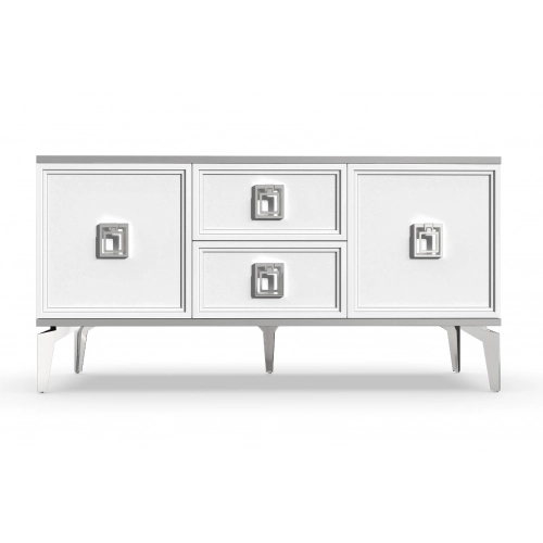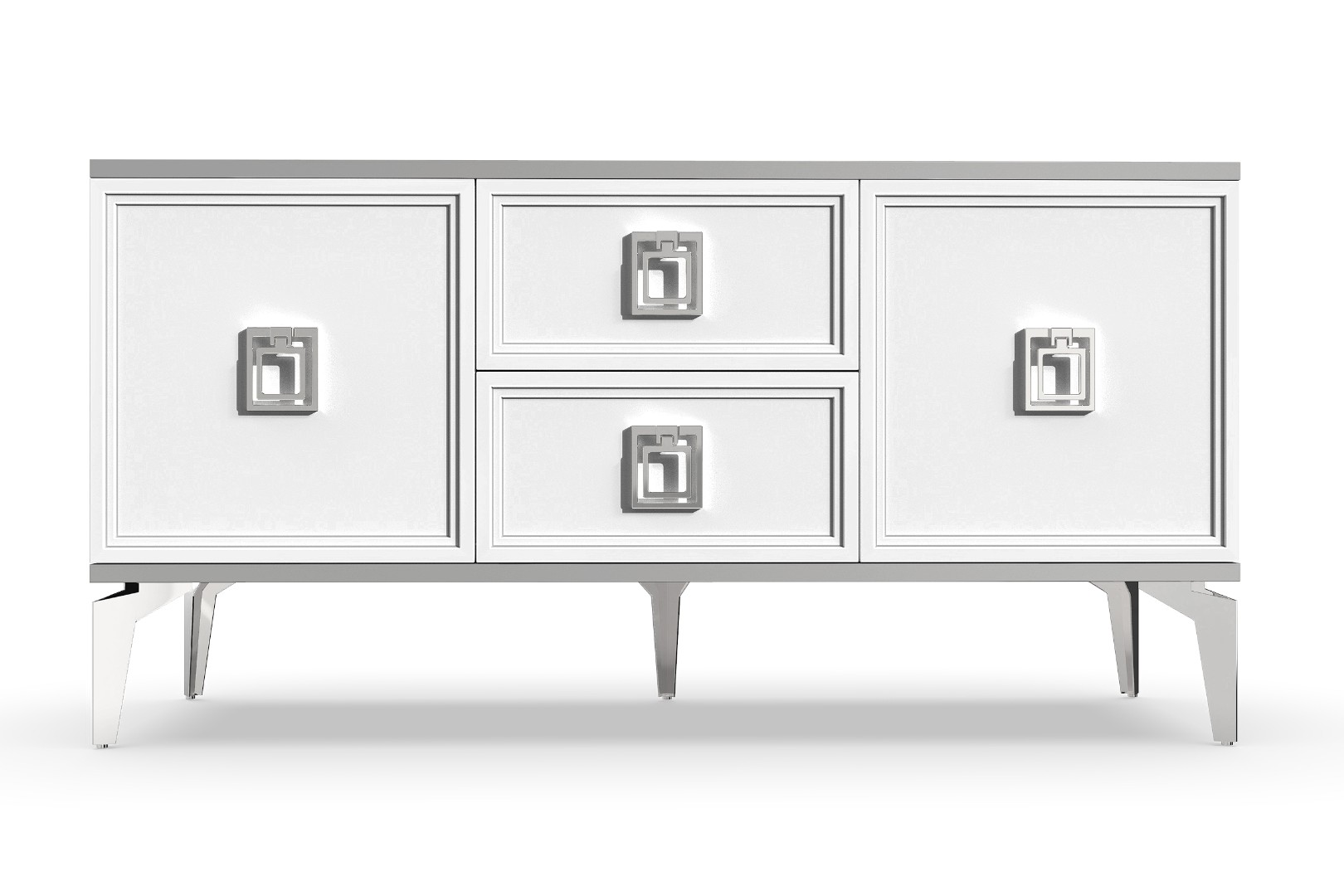 Тумба под ТВ Сириум имеет достаточно широкую столешницу, на которую легко поместится телевизор, а также небольшие предметы декора. Внизу тумбы расположены полки, которые можно использовать для хранения книг, журналов или мультимедийных устройств. Благодаря фрезеровке тумба выглядит особенно изысканно и привлекает внимание.