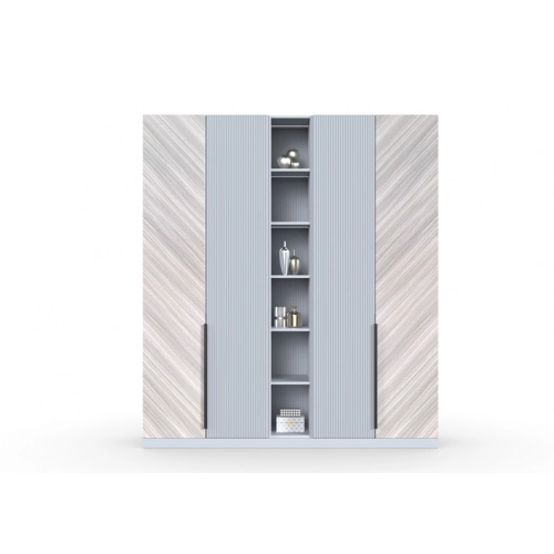 Шкаф 4-х створчатый Шале от фабрики Geona - это элегантное и практичное решение для хранения вещей в вашей спальне или гостиной. Он оснащен выдвижными ящиками и имеет эффектную отделку в диагональном направлении текстуры, что придает ему изысканный и стильный вид.
