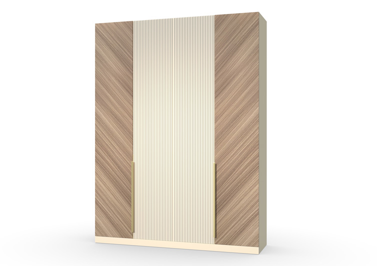 Шкаф 4-х створчатый Шале от фабрики Geona - это элегантное и практичное решение для хранения вещей в вашей спальне или гостиной. Он оснащен выдвижными ящиками и имеет эффектную отделку в диагональном направлении текстуры, что придает ему изысканный и стильный вид.